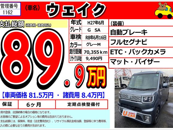 【中古車1162】ダイハツ ウェイク