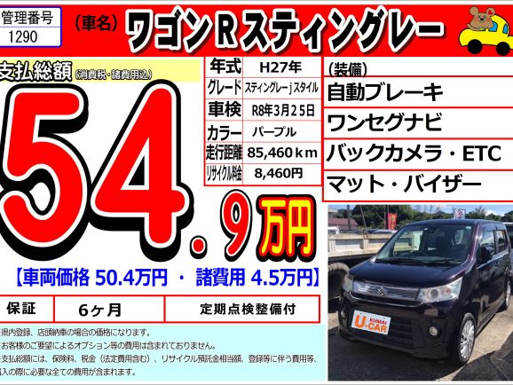 【中古車1290】スズキ ワゴンRスティングレー