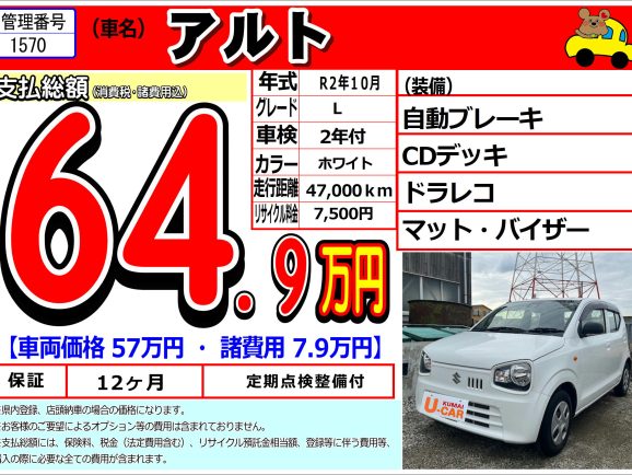 【中古車1570】スズキ アルト